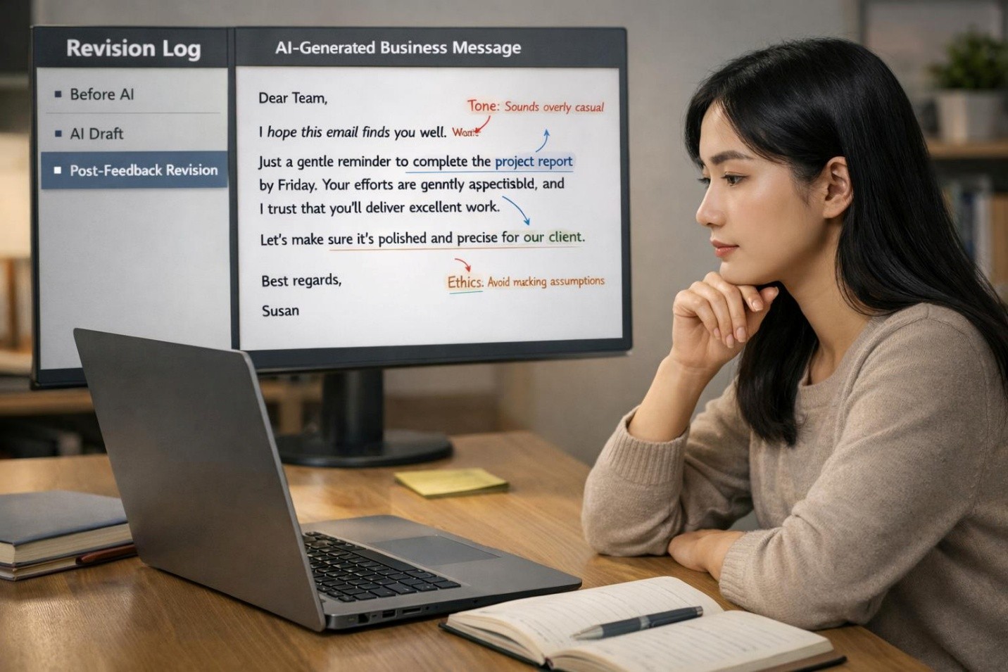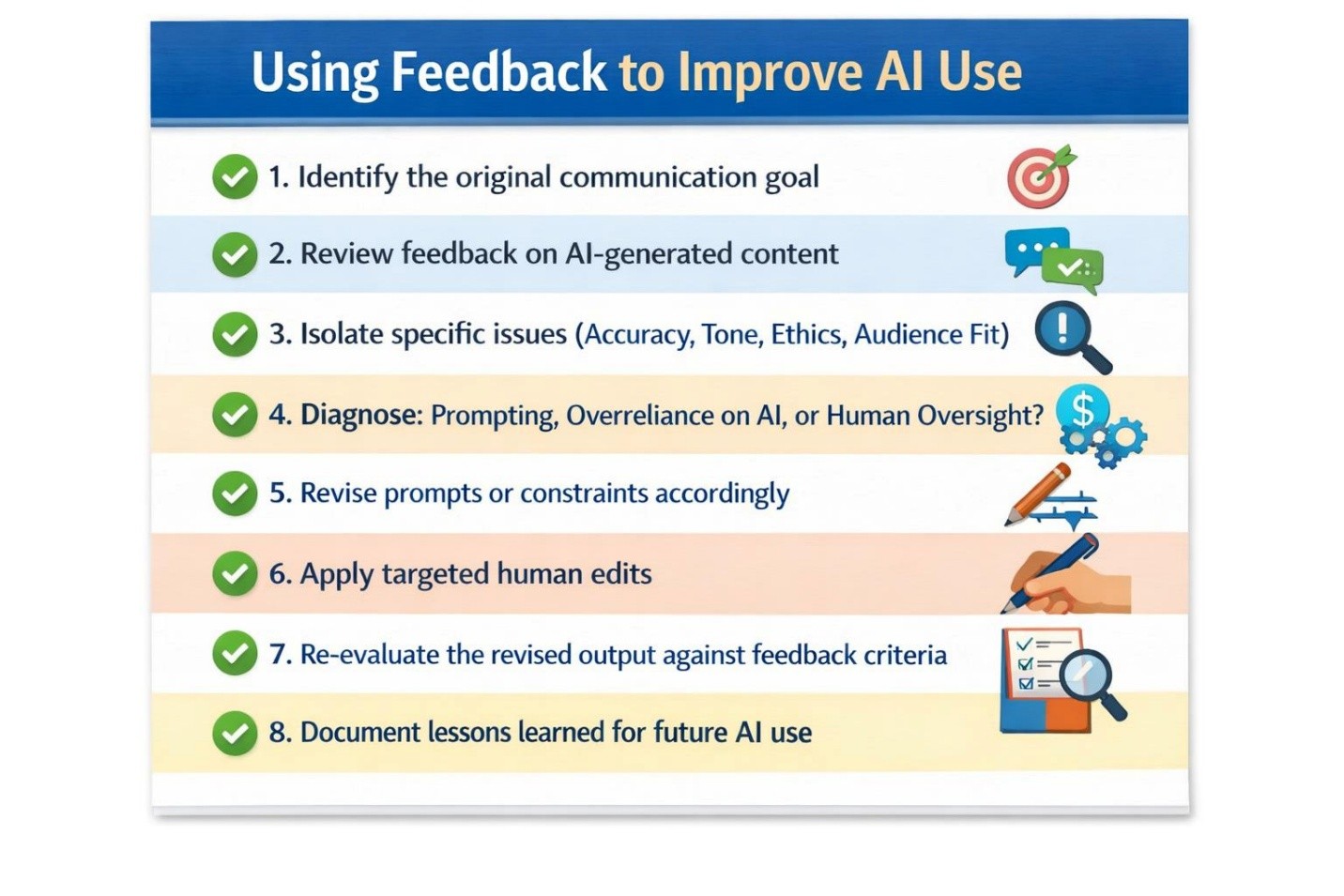 Feedback helps students refine judgment, not just drafts. AI-assisted communication benefits from iterative feedback and reflection.
