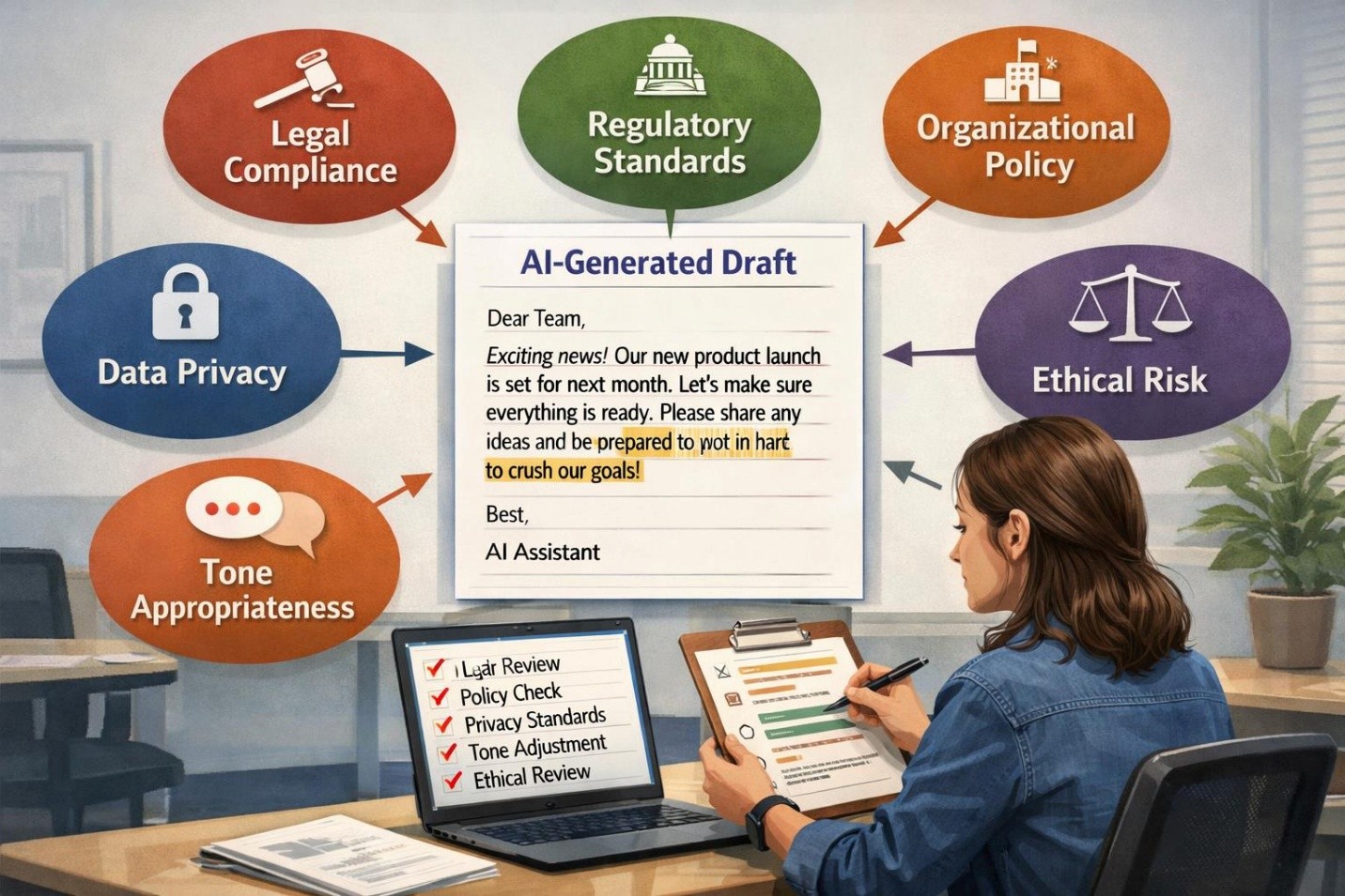 Compliance requirements shape how organizations communicate. AI-generated messages may unintentionally violate legal, regulatory, or policy standards if not reviewed carefully.